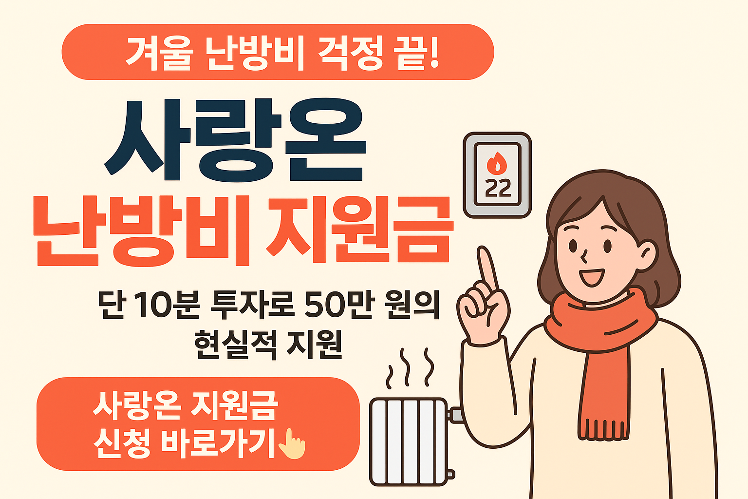 겨울이 다가오면서 난방비 걱정이 커지고 있죠. 특히 올해는 에너지 요금이 오르면서 부담이 더욱 크게 느껴집니다. 그런데 단 10분 투자로 50만 원의 현실적 지원을 받을 수 있다면 어떨까요? 바로 ‘사랑온 난방비 지원금’이 그 해답입니다. 신청법부터 일정, 서류, 꿀팁까지 지금 바로 확인해보세요. 추운 겨울, 따뜻함은 준비하는 사람의 것입니다 🔥